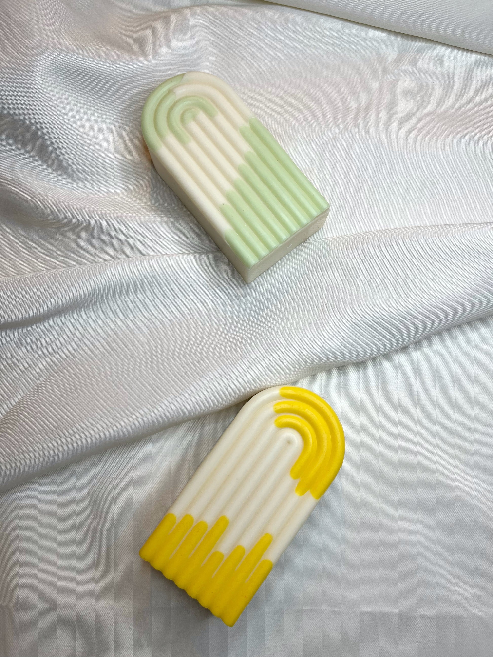 Optez pour une création unique avec cette bougie en forme d'arc-en-ciel bicolore.