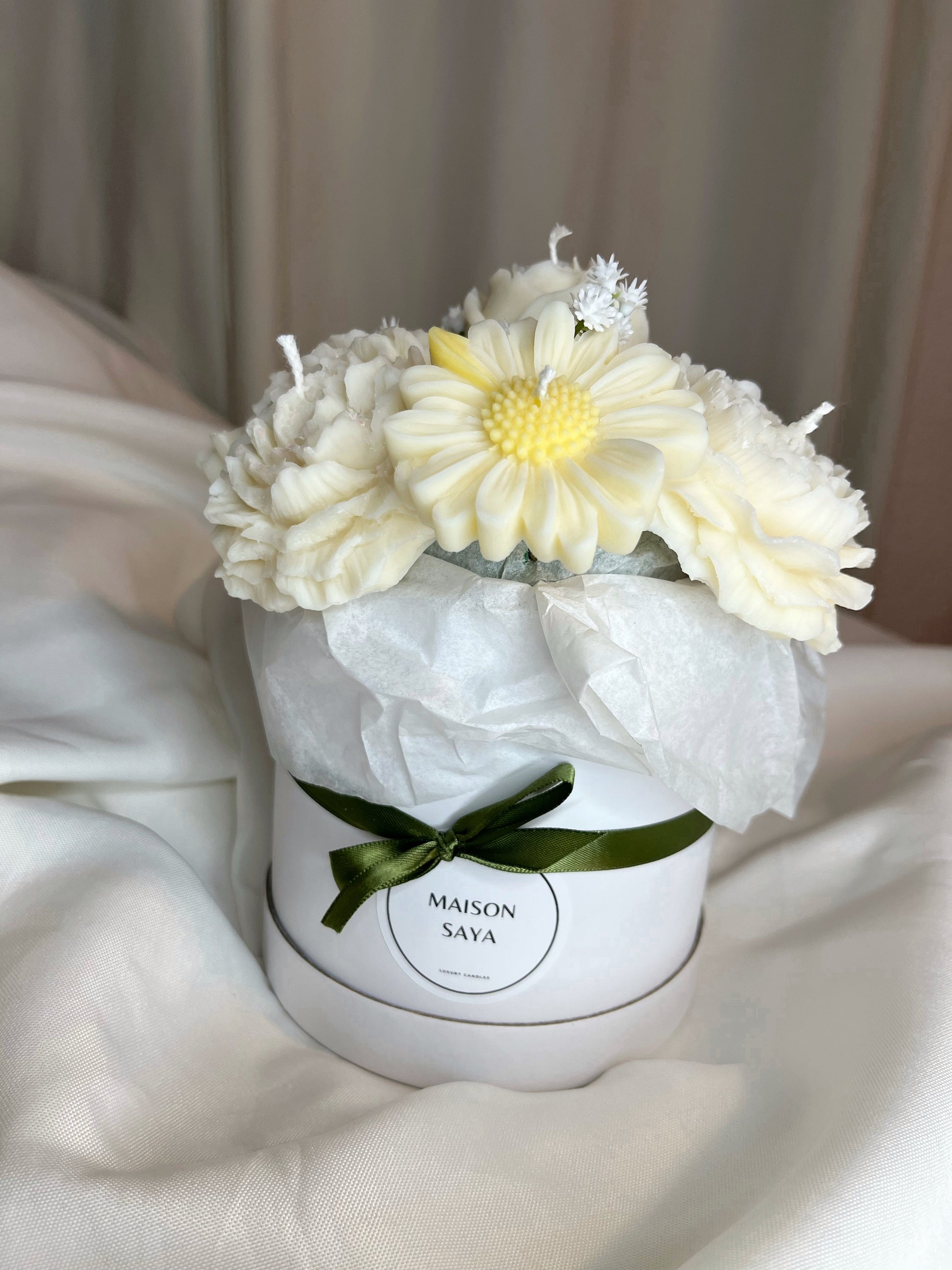 Chaque bouquet de bougies est soigneusement créé à la main avec passion et créativité. Unique et plein de charme, il apporte une touche chaleureuse et élégante à votre intérieur ou vos événements spéciaux. Parfait pour offrir ou pour se faire plaisir, ce bouquet mêle délicatesse, parfum subtil et esthétique raffinée. Chaque composition est réalisée avec amour pour illuminer vos plus beaux moments.